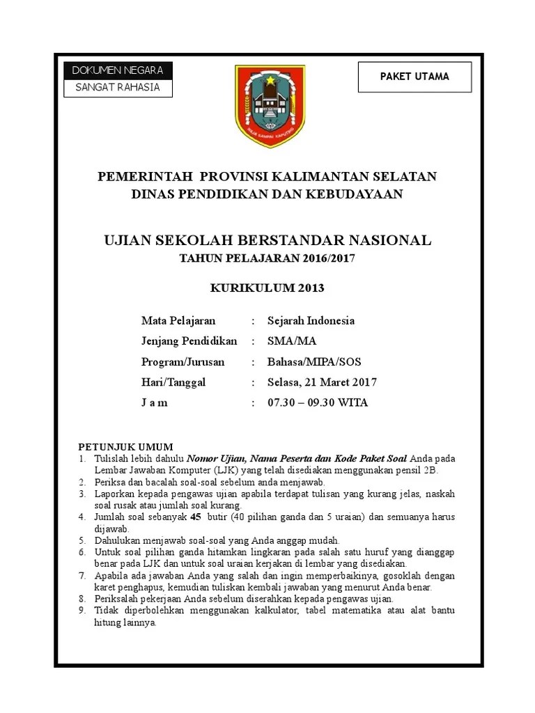 Naskah soal dengan lembar jawaban ujian sekolah berstandar nasional (ljusbn). Latihan soal ujian sekolah sejarah sma tahun tahun 2021 tahun … naskah soal usbn sejarah sma tahun pelajaran 2017/2018 paket 4 … Suasana kota jakarta pada saat pembacaan proklamasi kemerdekaan 17 . Usbn 2016/2017 hak cipta pada dinas pendidikan provinsi jawa barat dokumen negara 2 sejarah sma/ma ipa,ips, bahasa sangat rahasia.